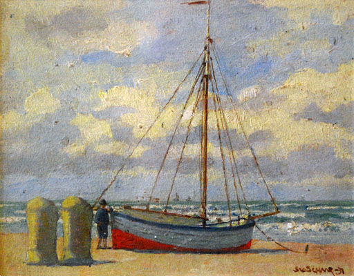 Zeil-vissersbootje op het strand